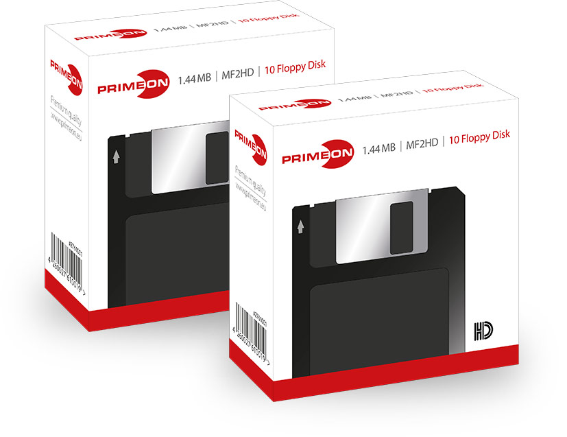 The high-quality PRIMEON MF2HD diskettes (8.89cm/3.5") feature a metal shutter and can be labelled individually with the included adhesive stickers. Thanks to the DOS/IBM formatting the floppy disks can be used out of the box.