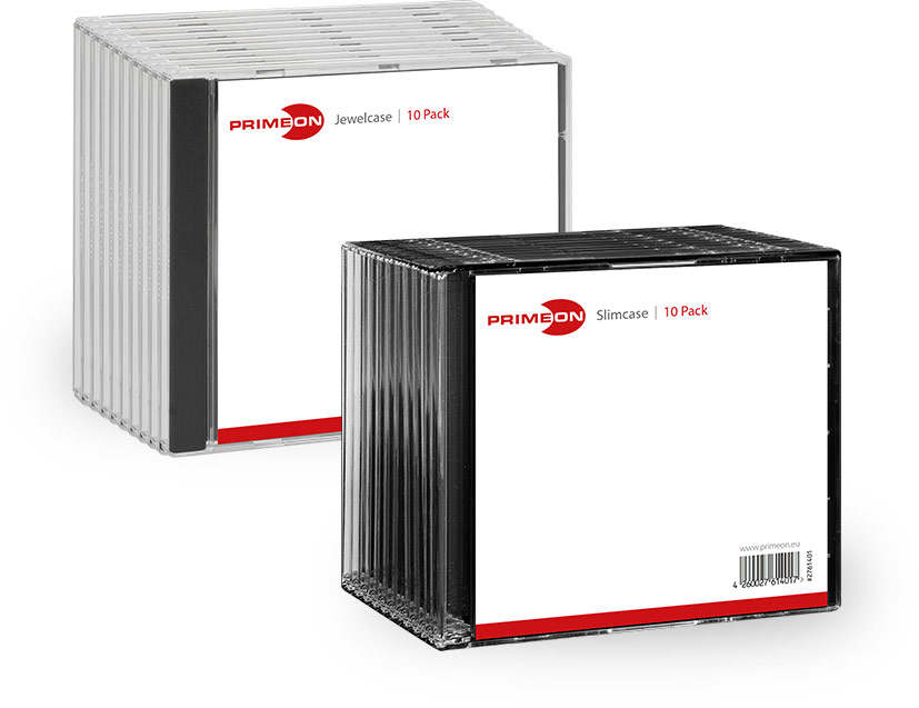 For secure storage and safe transport of all optical media we recommend these case products – available as slimcase and jewelcase models. With their elegant black tray they not only make a sleek impression but also prevent discs from being damaged. The perfect match for all PRIMEON cakebox products!
